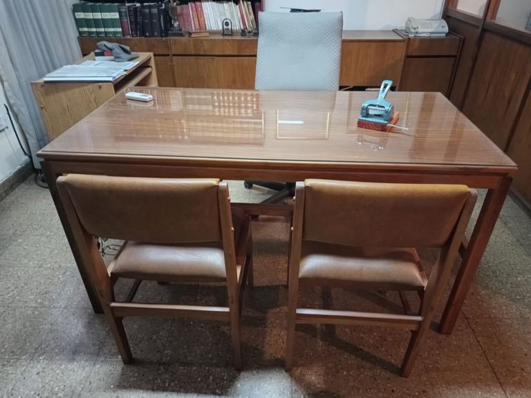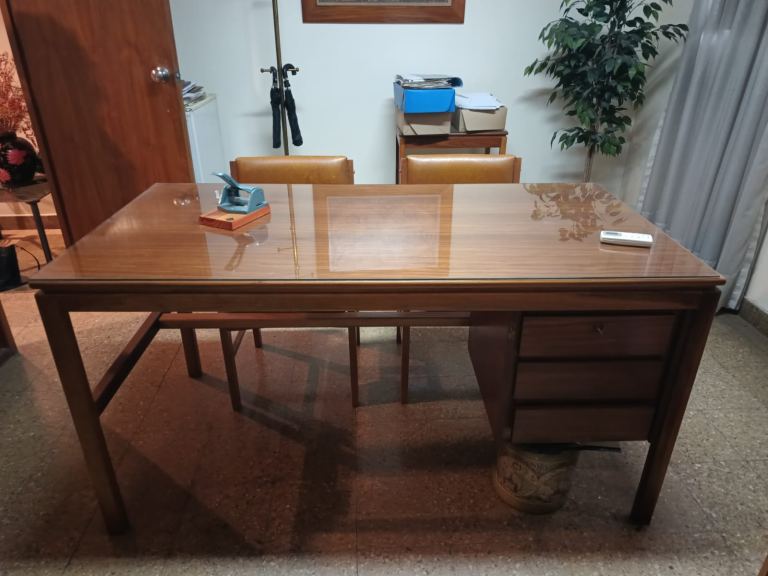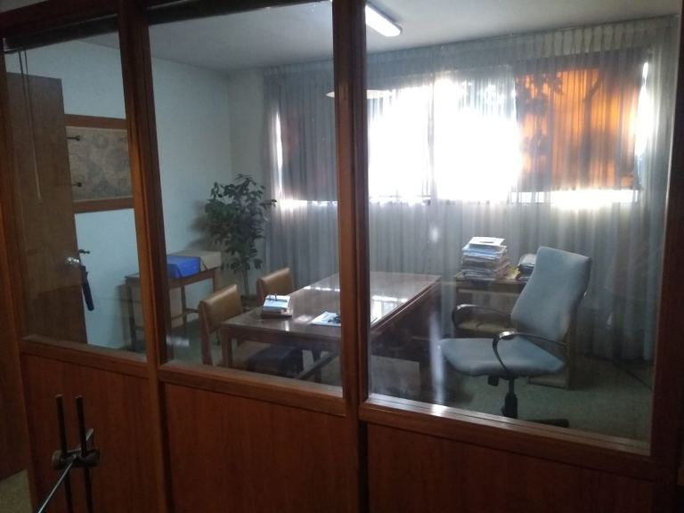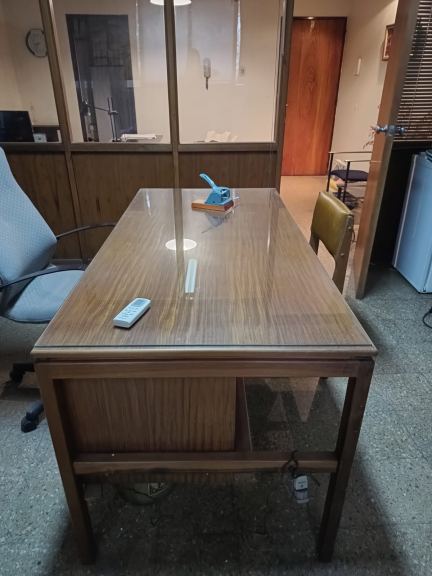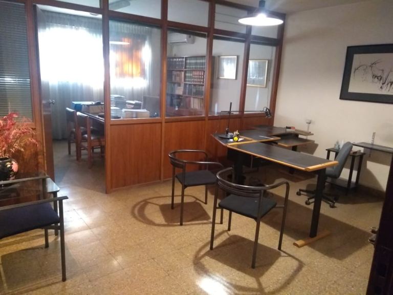Oficina Frontal 2º Piso por escalera sobre Av. España casi Pedro Molina. Excelente ubicación zona de Tribunales. Un ambiente con división en madera y vidrio. Se vende con o sin mobiliario el que consiste en un conjunto de muebles de oficina de madera de petiribí compuesto de :un escritorio, dos sillas, sillón con ruedas, mesita con ruedas, biblioteca con estanterías y perchero. Más un escritorio anexo para PC de melamina .